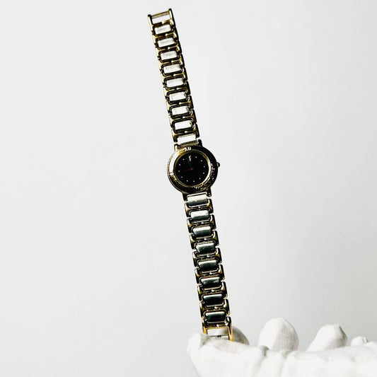 YSL Yves Saint Laurent Black Dial Roman Numerals Gold & Stainless Steel Round Two Tone Monogram Logo 25MM Quartz Watch