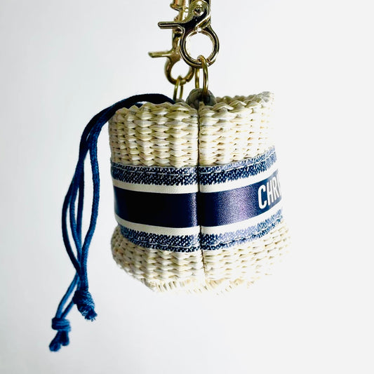 Christian Dior CD Beauty Navy Blue GHW 2-Way Monogram Logo Mini Straw Raffia Basket Drawstring Shoulder Sling Bag