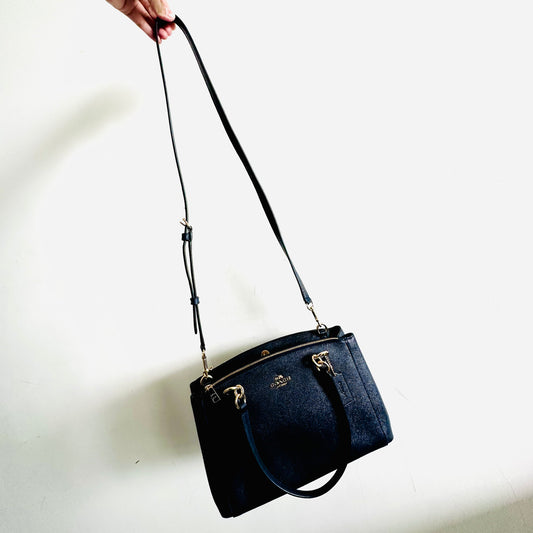 Coach Christie Navy Blue GHW Satchel Carryall 2-Way Top Handle Shoulder Sling Crossgrain Leather Tote Bag