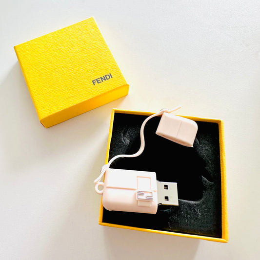 Fendi Pink Zucca FF Monogram Logo Flap Hobo Mamma Baguette Mini USB Flash Thumb Drive