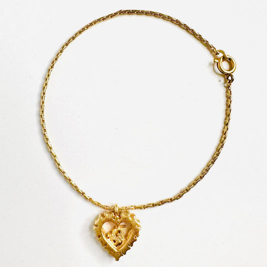 Christian Dior CD Giant Monogram Logo Gold Heart & Crystals Chain Bracelet