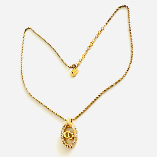 Christian Dior CD Monogram Logo Round Signature Gold & Crystals Classic Adjustable Vintage Necklace