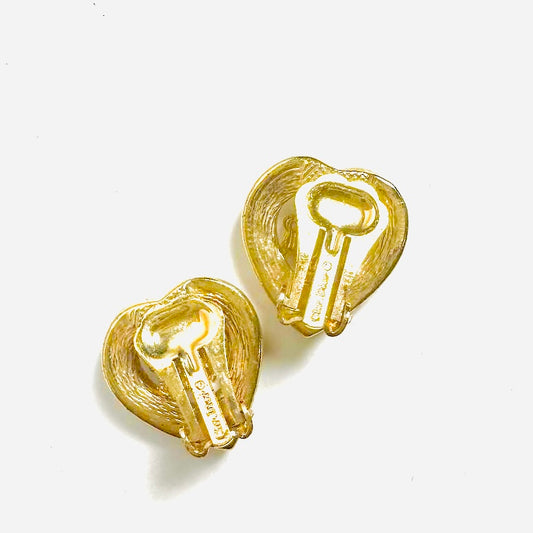 Christian Dior CD Giant Monogram Logo Gold & Crystals Heart Clip On Earrings