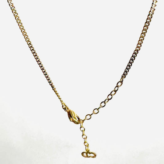 Christian Dior CD Gold Round Crystals Classic Pendant Monogram Logo Necklace