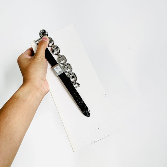 Christian Dior CD Chunky Pandiora Malice Stainless Steel Monogram Logo 19MM Chain Bracelet Bangle Watch With Leather Strap