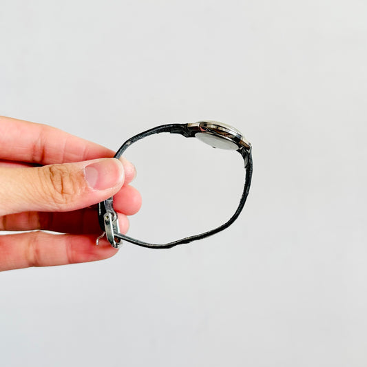 Omega Geneve Round White Dial Stainless Steel Black Leather Strap 18MM Vintage Watch