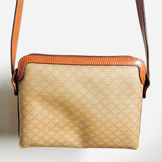 Celine Beige GHW Triomphe Monogram Logo Small Zip Shoulder Sling Bag
