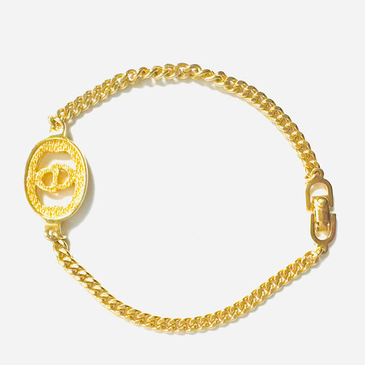 Christian Dior CD Gold & Crystals Giant Monogram Logo Chain Chunky Bracelet