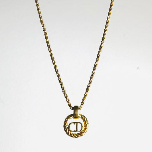 Christian Dior Gold Monogram Logo CD Spiral Pendant Chain Vintage Necklace