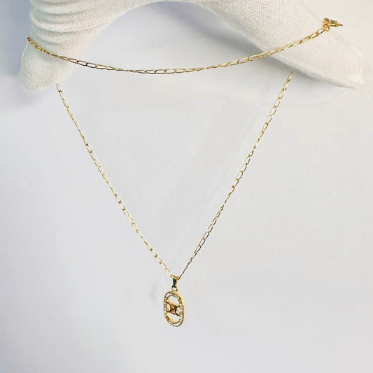Christian Dior CD Gold Monogram Logo Signature Crystals Hanging Charm Chain
