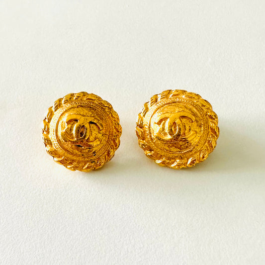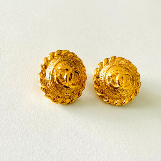 Chanel Gold Giant CC Logo Spiral Signature Classic Large Round Vintage Clip On Earrings