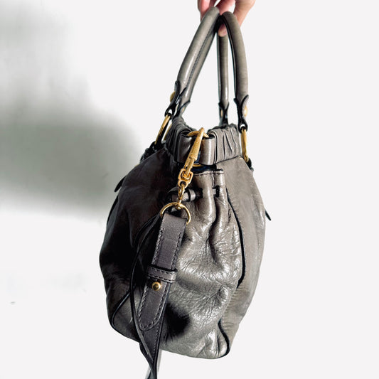 Miu Miu Graphite Grey GHW Vitello Lux Classic Logo 2-Way Shopper Shoulder Sling Tote Bag
