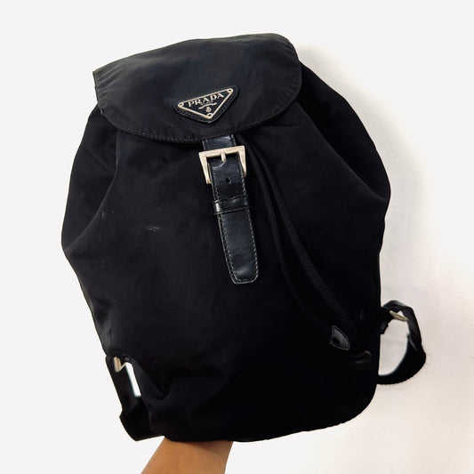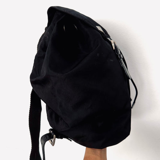 Prada Black Monogram Logo Tessuto Classic Nylon & Leather Backpack Bag