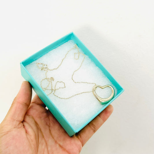 Tiffany & Co T&C Elsa Peretti Large Open Heart Pendant Classic 925 Sterling Silver Long Chain Necklace