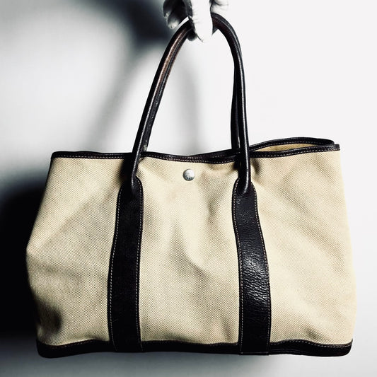 Hermes Beige / Dark Brown Garden Party PM 36 GP36 In Toile / Negonda Leather Tote Bag