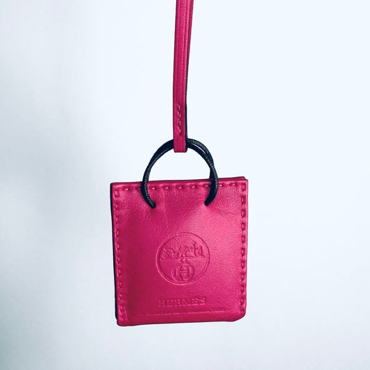 Hermes Sac Shopping Rose Mexico Milo Lambskin Paper Bag Charm