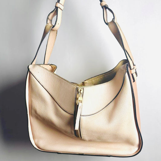 Loewe Small Hammock Sand Beige / Pink GHW Calfskin Anagram Monogram Logo 2-Way Top Handle Shoulder Sling Bag