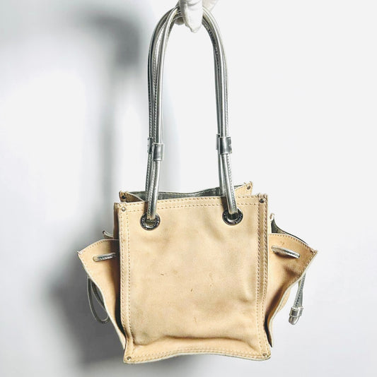 Loewe Taupe Beige Giant Silver Anagram Logo Monogram Suede Leather Shopper Shoulder Bucket Tote Bag