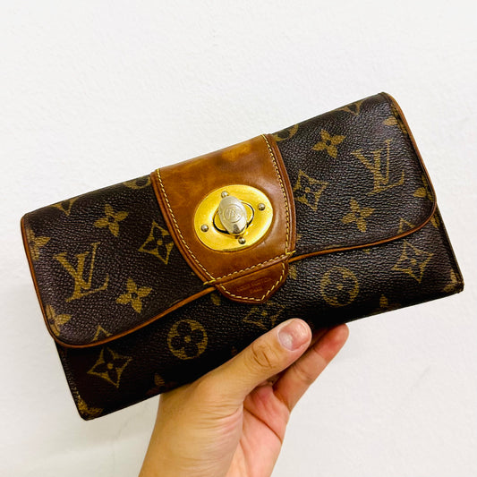 Louis Vuitton LV Sarah Monogram Logo GHW Flap Vintage Long Wallet
