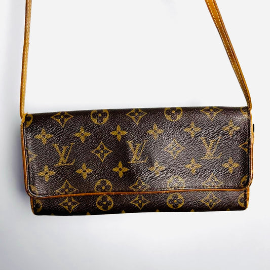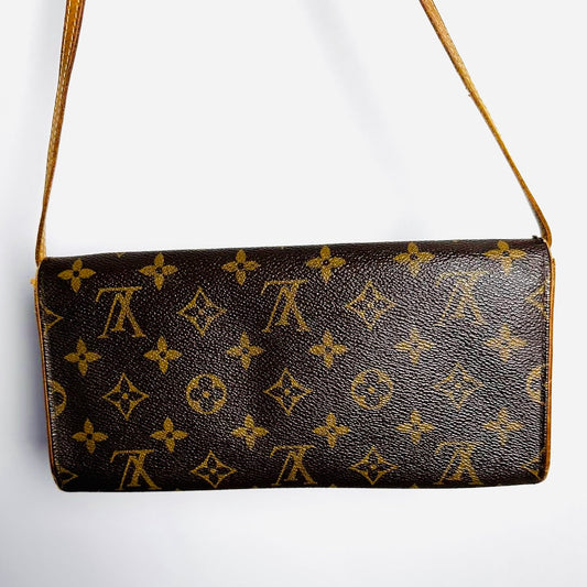 Louis Vuitton LV Pochette Twin GM Monogram Logo GHW Shoulder Sling Bag Pouch Clutch