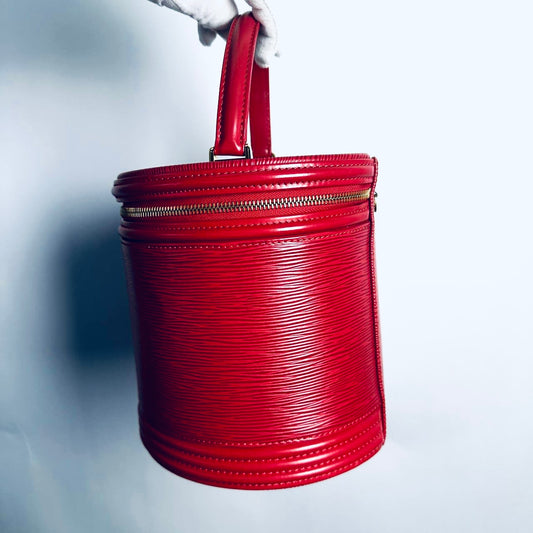 Louis Vuitton LV Red GHW Epi Leather Cannes Monogram Logo Top Handle Vanity Case Bag