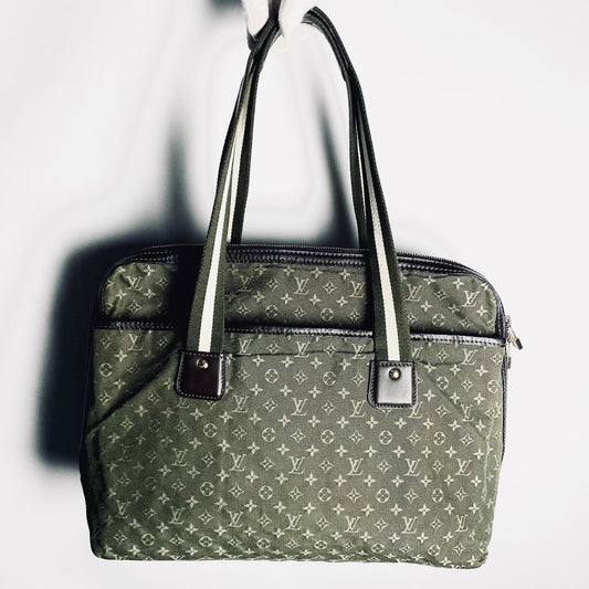 Louis Vuitton LV Dark Khaki Mini Lin Mary Kate Besace Monogram Logo GHW Shoulder Shopper Tote Bag