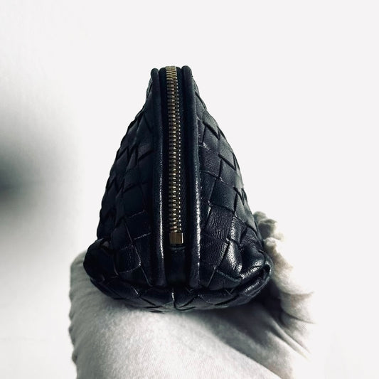 Bottega Veneta BV Black GHW Intrecciato Nappa Woven Leather Zip Cosmetic Toiletry Pouch Clutch Case