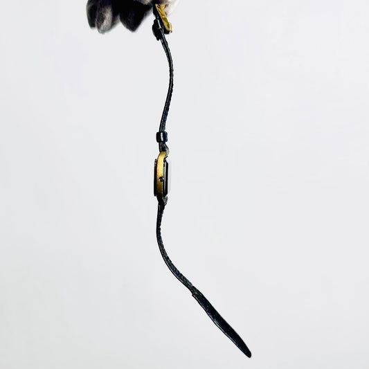 Omega De Ville Gold Dial Black Leather Strap Vintage 18MM Quartz Watch