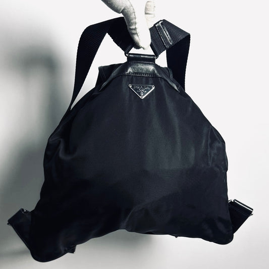 Prada Black Monogram Logo Tessuto Classic Nylon & Leather Backpack Bag