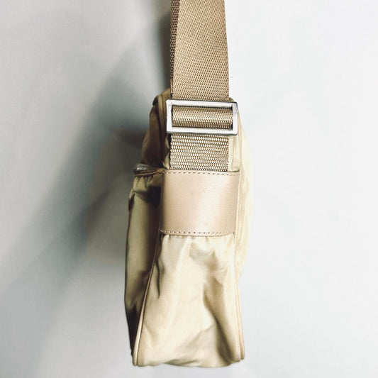 Prada Tan Khaki Tessuto Classic Logo Nylon & Leather Flap Shoulder Sling Bag
