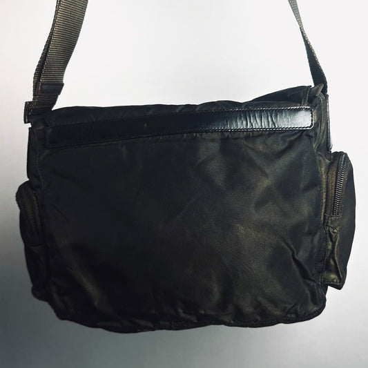 Prada Black Tessuto Monogram Logo Flap Shoulder Sling Bag