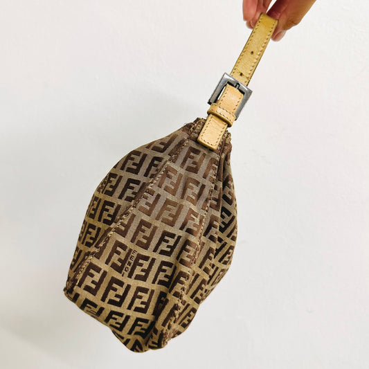 Fendi Brown FF Zucca Monogram Logo Pochette Baguette Hobo Shoulder Bag