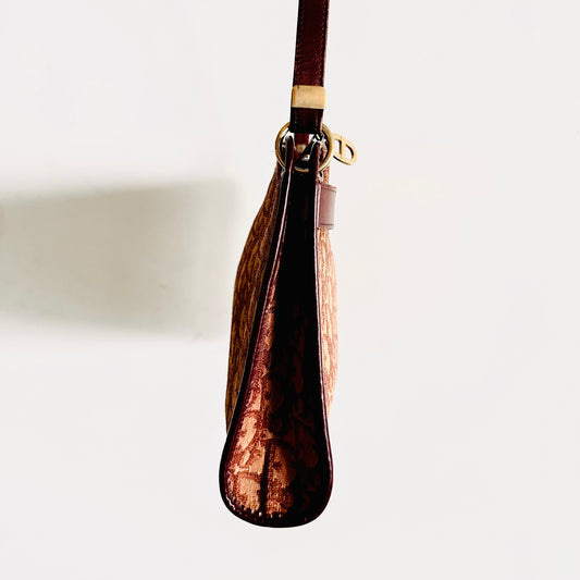 Christian Dior CD Maroon Red GHW Oblique Monogram Logo Zip Shoulder Sling Bag