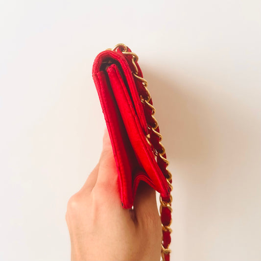 Chanel Red GHW Mini Square Classic Single Flap Quilted Satin Fabric CC Logo Turnlock Vintage Shoulder Sling Bag 1s