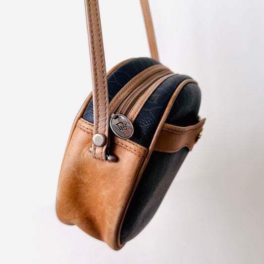 Christian Dior CD Black Honeycomb Oblique Monogram Logo Vintage Zip Shoulder Sling Bag