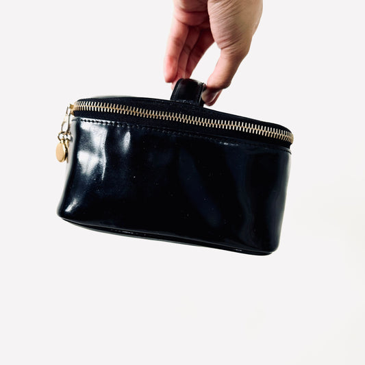 Chanel Black GHW Giant CC Logo Patent Leather Vanity Case Vintage Top Handle Bag 4s