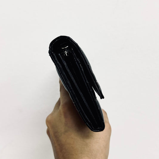 Christian Dior Black Lady Dior Flap CD Monogram Logo Quilted Cannage Patent Leather Long Flap Wallet