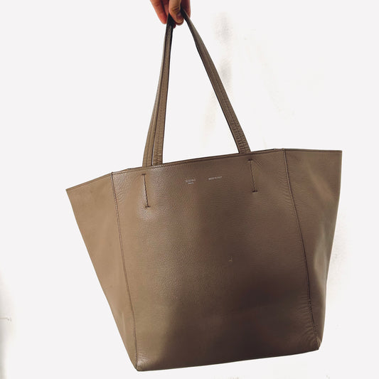 Celine Taupe Cabas Phantom Monogram Logo Shopping Shoulder Tote Bag With Pouch Soft Grained Calfskin
