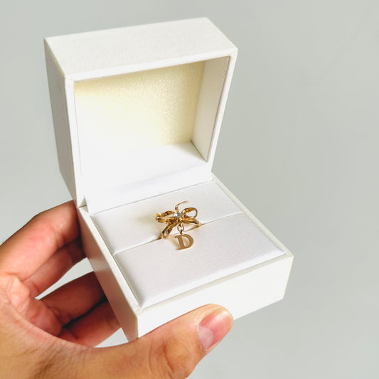 Christian Dior CD Classic Gold Monogram Logo Charm Bow Ribbon Ring