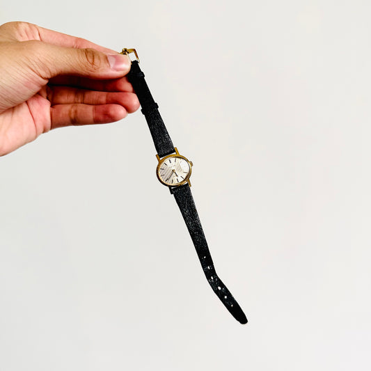 Omega Geneve Round Gold Dial Black Leather Strap Vintage 24MM Watch