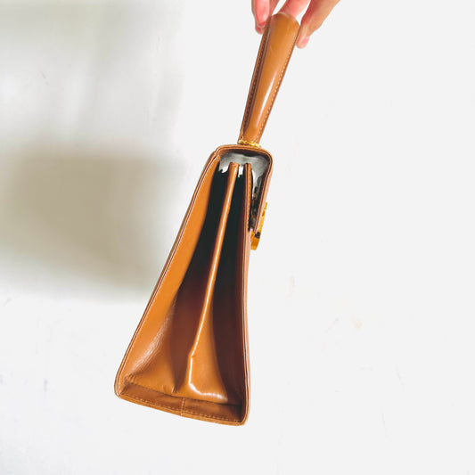 Salvatore Ferragamo Caramel Tan Brown GHW Kelly Gancini Logo Smooth Leather Top Handle Bag