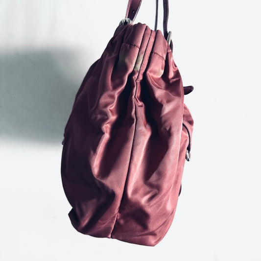 Prada Mauve Pink GHW Tessuto Bow Classic Logo Nylon Shopper Shoulder Tote Bag