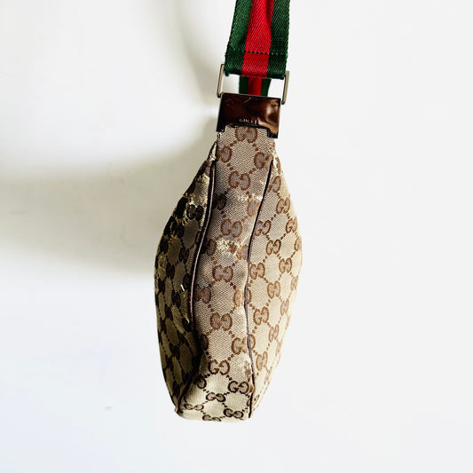 Gucci Beige GG Monogram Logo Web Striped Strap Half Moon Crescent Hobo Baguette Shoulder Sling Bag