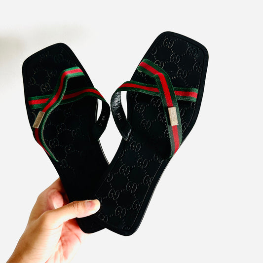 Gucci Black Cherry Line GG Monogram Web Striped Sandals Slippers Size 36