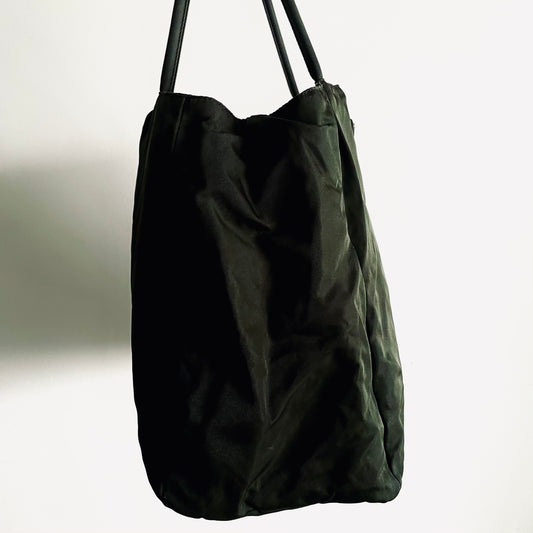 Prada Dark Green Khaki Tessuto Classic Logo Nylon Triangular Structured Tote Bag
