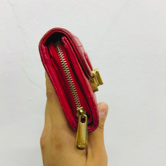 Christian Dior CD Cherry Red GHW Miss Dior Diorling Addict Cannage Quilted Lambskin Flap Monogram Logo Compact Wallet