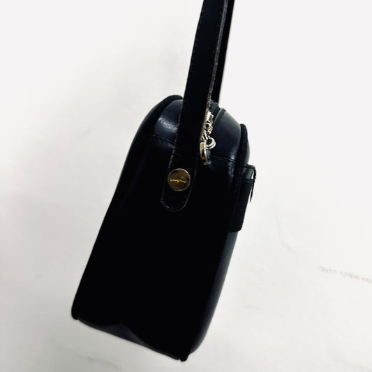 Salvatore Ferragamo Vara Bow Black GHW Monogram Logo Smooth Leather Camera Shoulder Sling Bag