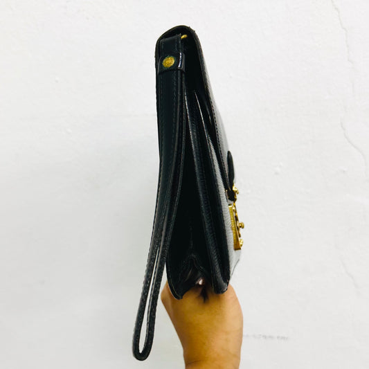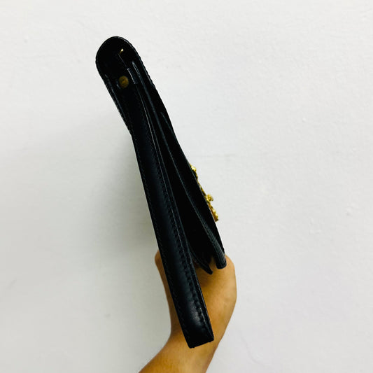 Louis Vuitton LV Black GHW Monogram Logo Epi Leather Dragonne Monceau Flap Wrislet Pouch Case Clutch
