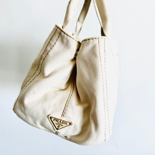 Prada White GHW Canapa Classic Logo Structured Shopper Tote Bag