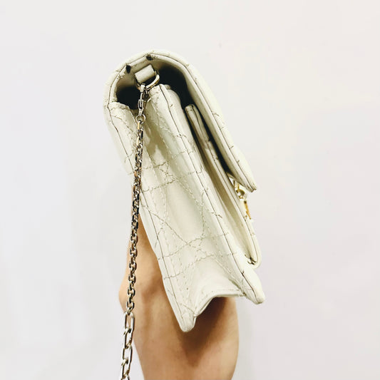 Christian Dior CD Lady My Dior Daily Chain Pouch Latte White GHW Monogram Logo Cannage Quilted Lambskin Shoulder Sling Flap Bag
